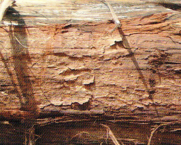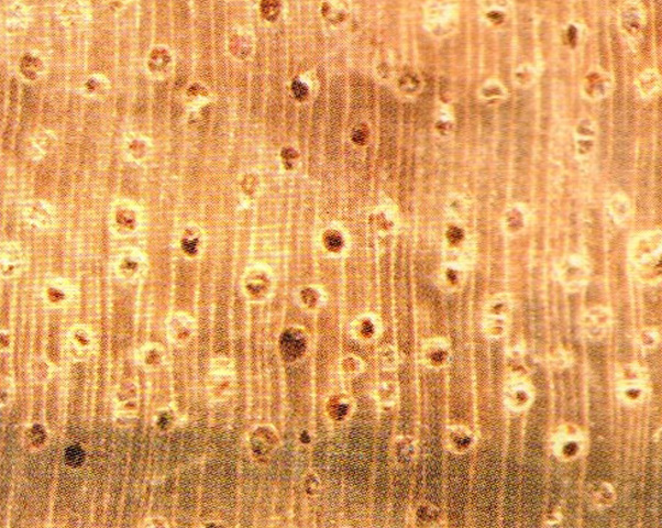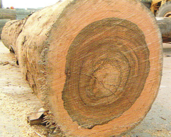 心邊材區(qū)別明顯。心材暗褐色,常帶有深褐色至黑色同心圓狀的條紋,略似核桃木。邊材很寬,灰黃色或淺玫瑰色,寬可達(dá)20cm以上。生長輪略明顯、較均勻。