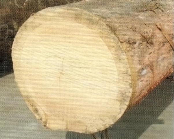 心邊材新鮮時(shí)區(qū)別不明顯,由于邊材易藍(lán)變,久則區(qū)別明顯。心材淺黃褐色至稻草黃褐色。邊材淺灰褐色,寬3~5 cm;常見(jiàn)白色樹(shù)膠圈。生長(zhǎng)輪不明顯。