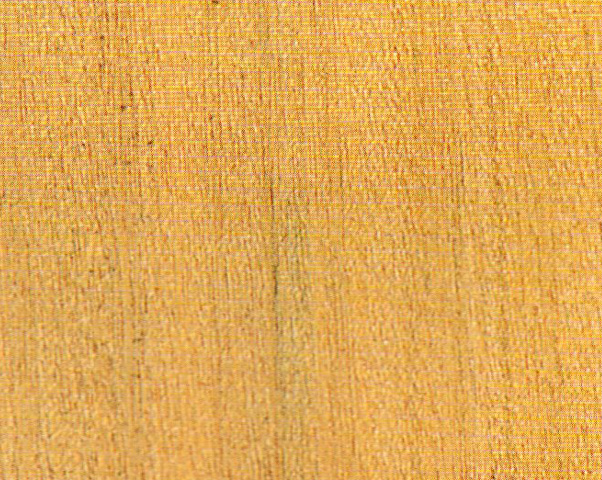 光澤弱。紋理略交錯(cuò);結(jié)構(gòu)略粗,均勻;重量、硬度、強(qiáng)度中等:干縮小。加工容易,切面光滑;含硅石,刀具易鈍:油漆、膠黏、拋光性能好; 握釘力強(qiáng)。略耐腐。干燥很慢,有開(kāi)裂、輕微翹曲、杯彎缺陷。氣干密度約0.6 g/cm3。